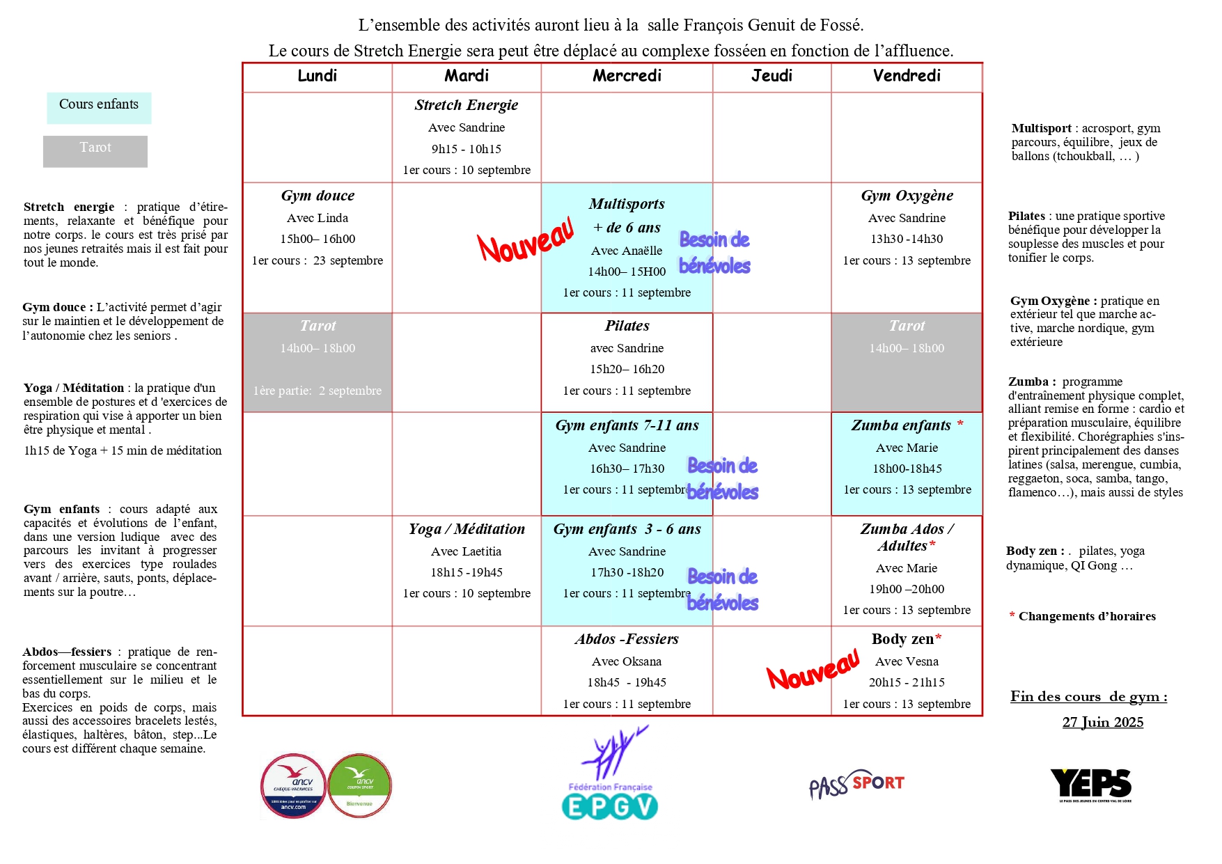 L’été passe vite et il faut déjà penser aux activités de la rentrée.